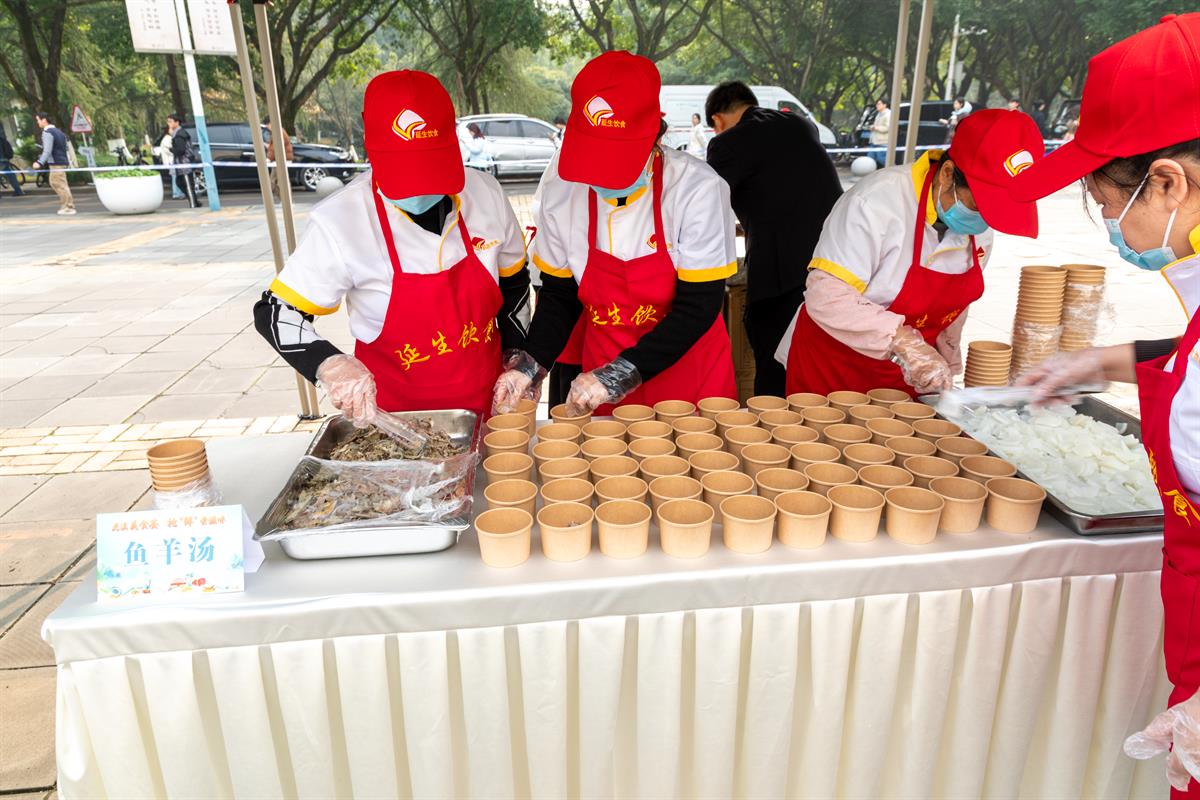 时值冬至将至,暖意渐浓之际,本次活动重庆大学以“虎溪美食荟,抢“鲜”尝滋味”为主题,旨在搭建企业与师生的互动桥梁。作为参与餐饮企业之一,延生饮食携特色菜品“鱼羊鲜汤”、“烤全羊”惊艳亮相,与炸湖鱼、太安鱼等美食共同为近3000名师生呈现了一场味觉与文化的盛宴。